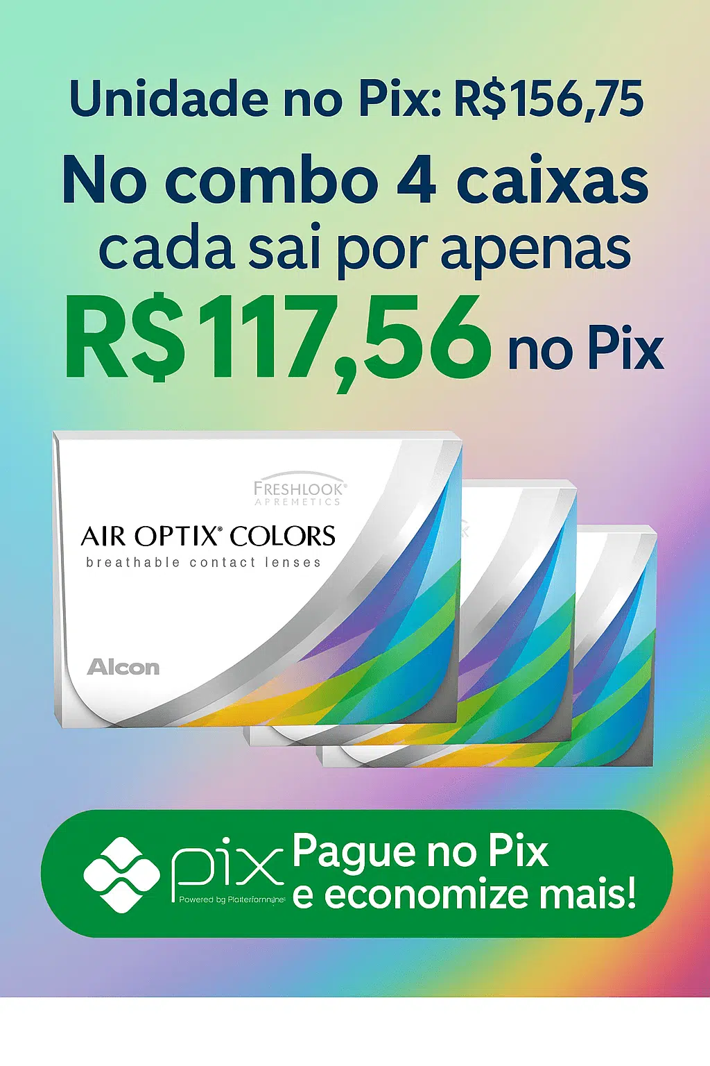 Preços e Promoções: Não perca nossas ofertas especiais! Por tempo limitado, estamos oferecendo um desconto de 5% em todas as compras com pagamento no PIX ou boleto. Aproveite essa oportunidade para economizar enquanto compra suas lentes de contato favoritas. Além disso, todas as compras incluem frete grátis para todo o Brasil, nas compras acima de R$ 200,00, tornando sua experiência de compra ainda mais conveniente. Também aproveite os nossos combos promocionais de 4 caixas.